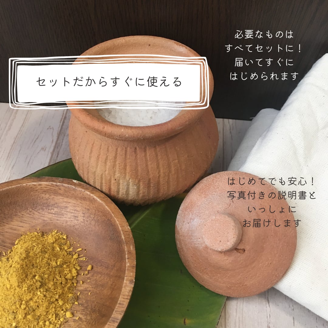 【コレさえあれば!】タイ伝統セルフケア「ユーファイ」用ソルトポット・セット