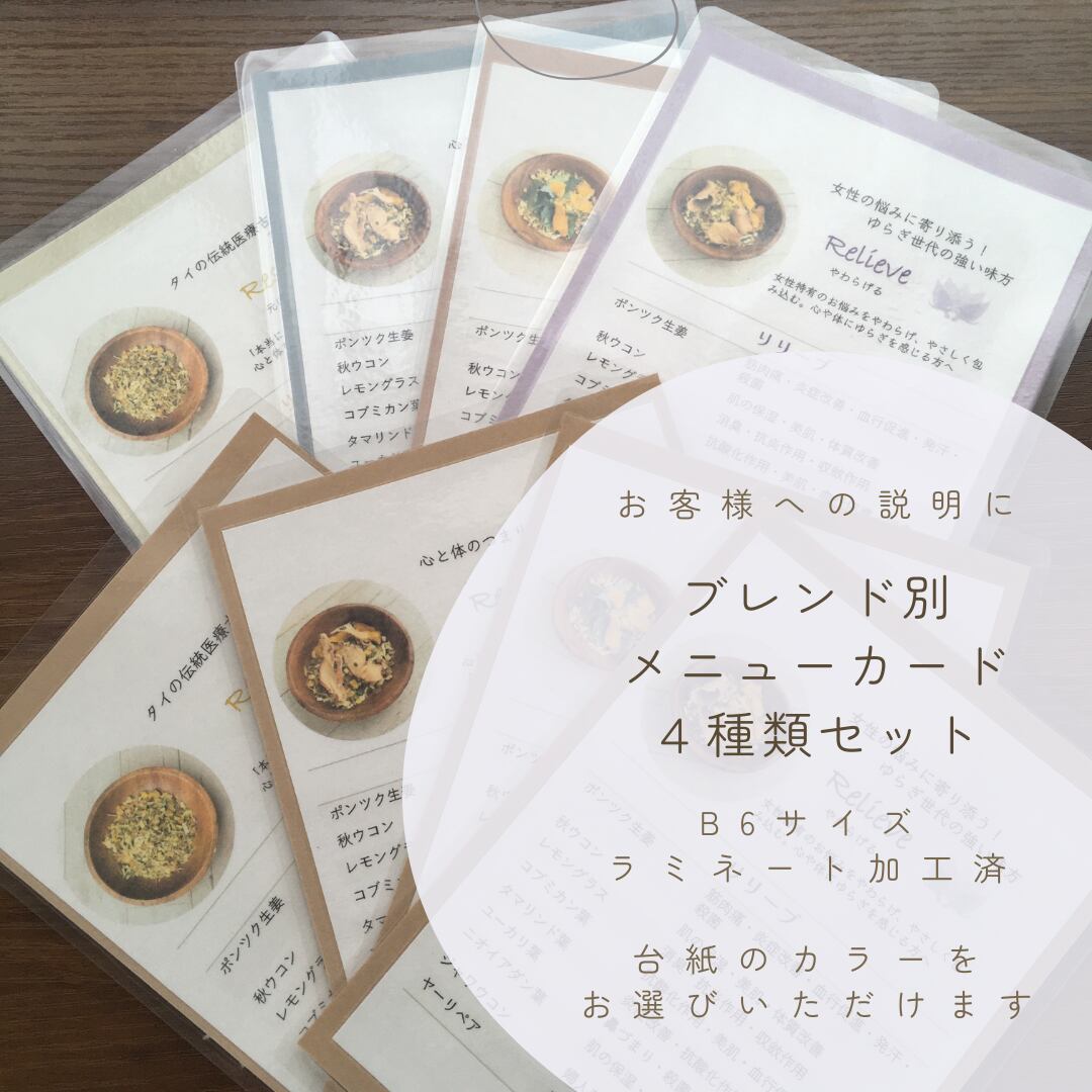 *ブレンド別メニューカード4枚(Relieve/Remove/Recover/Reset)